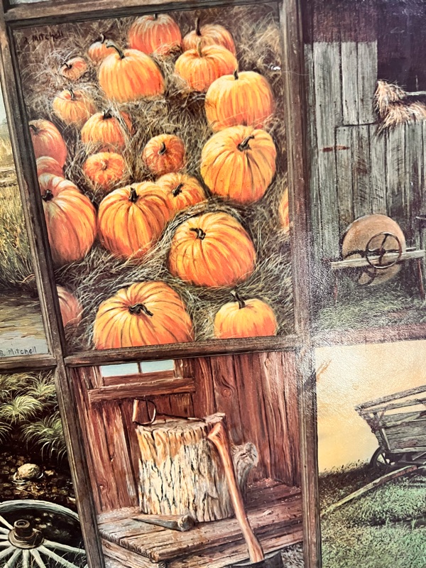That’s exactly why vintage seasonal wall art is having such a strong comeback — especially rare finds like this Homco B. Mitchell autumn window pane scene.